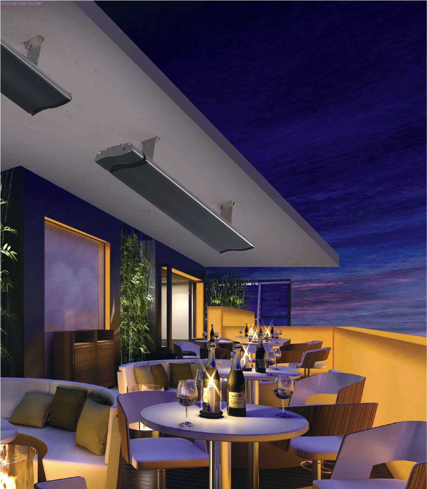 Der Dunkelstrahler schafft eine wohlige Umgebungstemperatur ohne störend rötlich zu leuchten. Der Infrarotstrahler ist optimal für windstille, sowie geschlossene Bereiche.