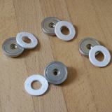 Das Set beinhaltet 4 Stück Magnethalter (Tragkraft 24 kg / Stück, Durchmesser 30 mm, Höhe 8 mm, Bohrung 5,5 mm) und 4 Distanzringe.
