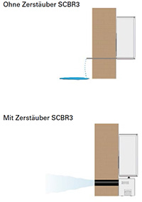 SCBR3 kann sowohl innen (mit Wandbohrung 80 mm) als auch außen installiert werden.