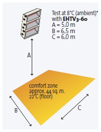 Der Infrarot Heizstrahler Helios Titan EHT3-45 von Star Progetti in horizontaler Ausführung überzeugt mit bester Wärmeprojektion aufgrund des grossen Reflektors.