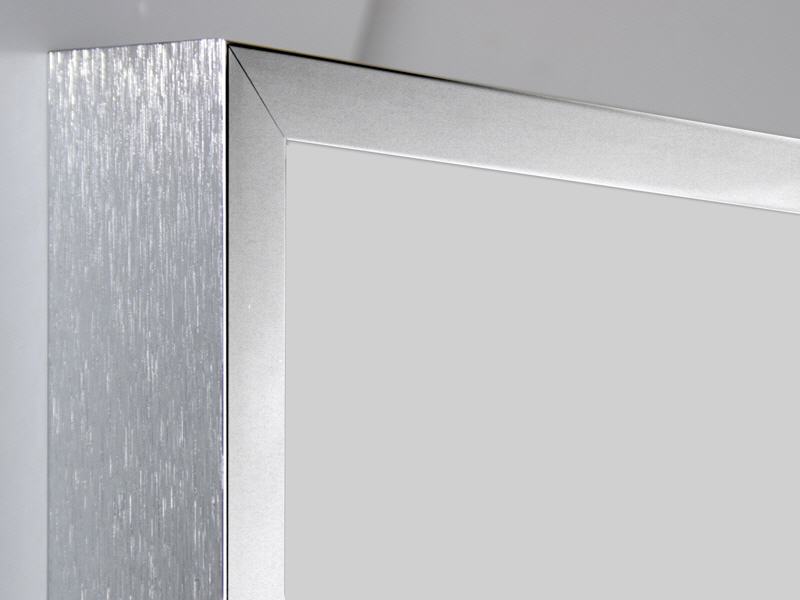 Infrarot Spiegelheizung 900 Watt mit Alurahmen 10 mm. Front Sicherheitsglas, Rückseite MDF grau. Mit Überhitzungschutz - TÜV-Süd geprüft.