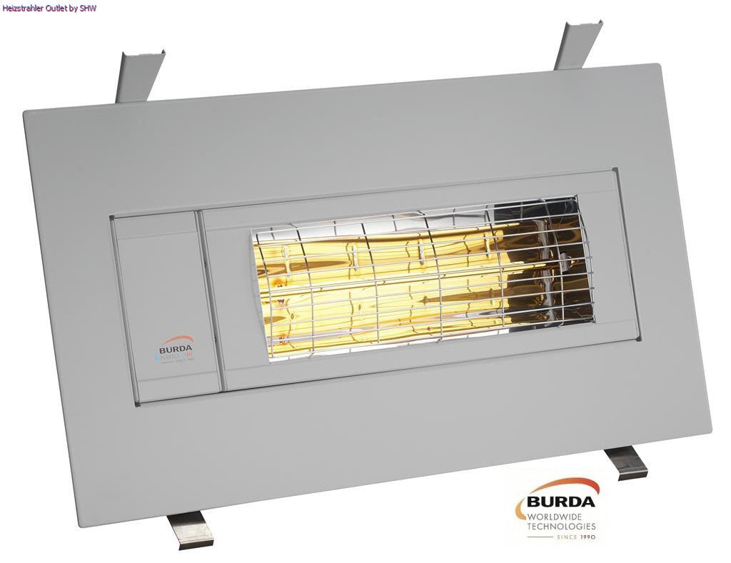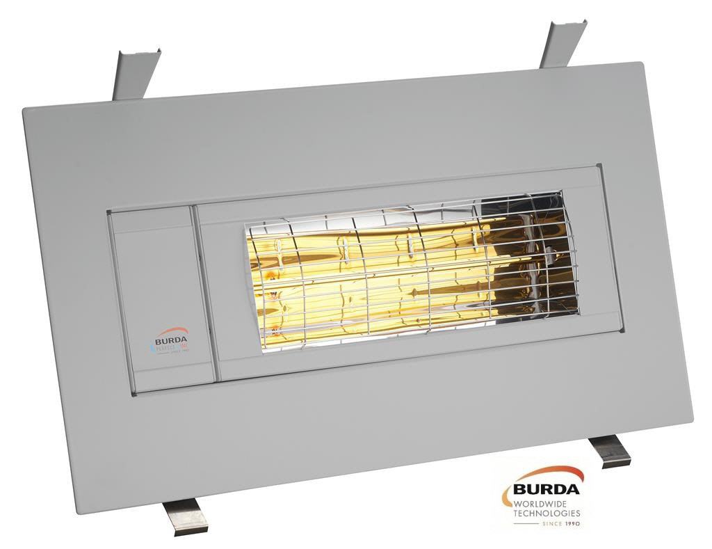 Burda Smart Frame BHSF2024-3 Low Glare Decken- und Wandeinbaumodell mit Spritzwasserschutz IP24 im rostfreien Aluminiumrahmen für geschützte Außenbereiche. Mit einer Leistung von 2.000 Watt versorgt der Einbaustrahler eine Fläche von circa 14 - 16 qm zuverlässig und schnell mit Sofortwärme.
