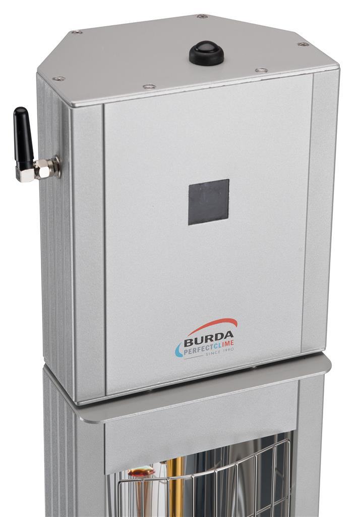 Der designstarke SMART TOWER Bluetooth wartet mit gleich zwei neuen Features auf. Mit einer Bluetooth Schnittstelle kann er ab sofort bequem mit der kostenlosen BURDA APP (IOS und Android) über das Smartphone und Tablet bedient werden. Neu ist auch die Aufwertung des Heizstrahlers mit der Spritzwasserschutzklasse IP24, die den vielseitigen, mobilen Einsatz in Außenbereichen erlaubt.