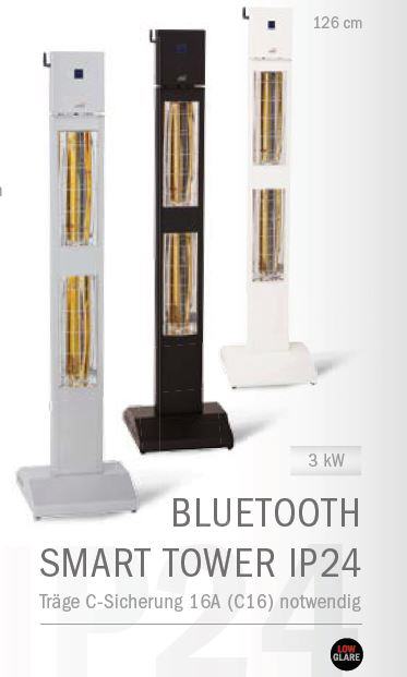 Der designstarke SMART TOWER Bluetooth wartet mit gleich zwei neuen Features auf. Mit einer Bluetooth Schnittstelle kann er ab sofort bequem mit der kostenlosen BURDA APP (IOS und Android) über das Smartphone und Tablet bedient werden. Neu ist auch die Aufwertung des Heizstrahlers mit der Spritzwasserschutzklasse IP24, die den vielseitigen, mobilen Einsatz in Außenbereichen erlaubt.