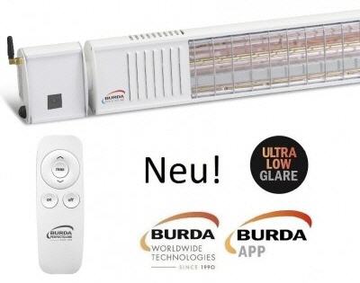 Dieser komplett wasserdichte Burda Bluetooth Infrarotstrahler BTURCAC200V9005 TERM2000 IP67 mit Ultra Low Glare Heizröhre inkl. Fernbedienung, integriertem Schalter und Bluetooth Steuerung per BURDA PERFECTCLIME APP ist Ihr idealer Burda Heizstrahler für Sofortwärme auf Knopdruck!