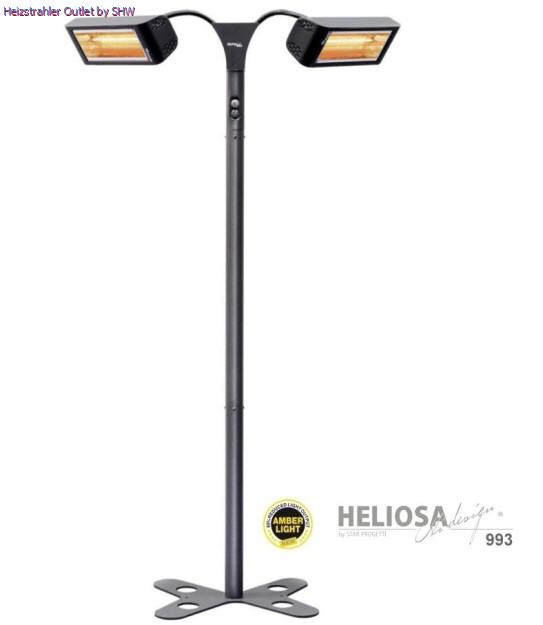 Infrarot Heizstrahler Heliosa HiDesign 993 - IPx5 - mit "flexiblen" Armen - 2 x 1.500 Watt Heliosa 44 Heizstrahler mit Amber Light Heizröhren.