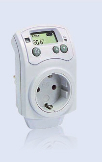Einfaches Thermostat welches vor dem Verbraucher (Heizelement) in die Steckdose gesteckt wird.