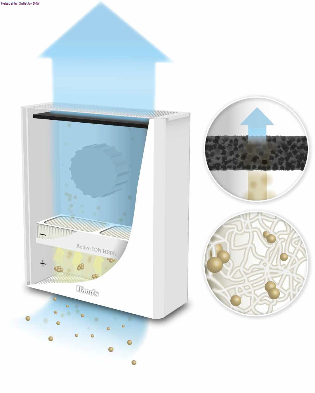 Entfernt mehr als 99,98% der schädlichen Partikel, Viren und Bakterien in der Raumluft.