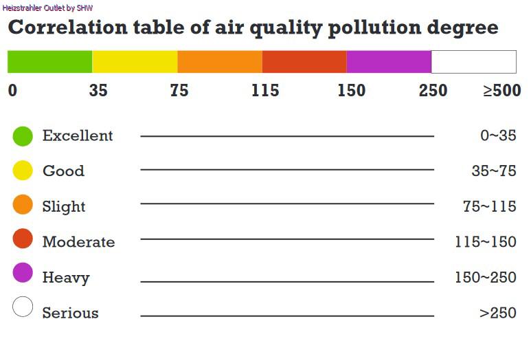 • Zeigt zusätzlich mit Farben die Luftqualität an